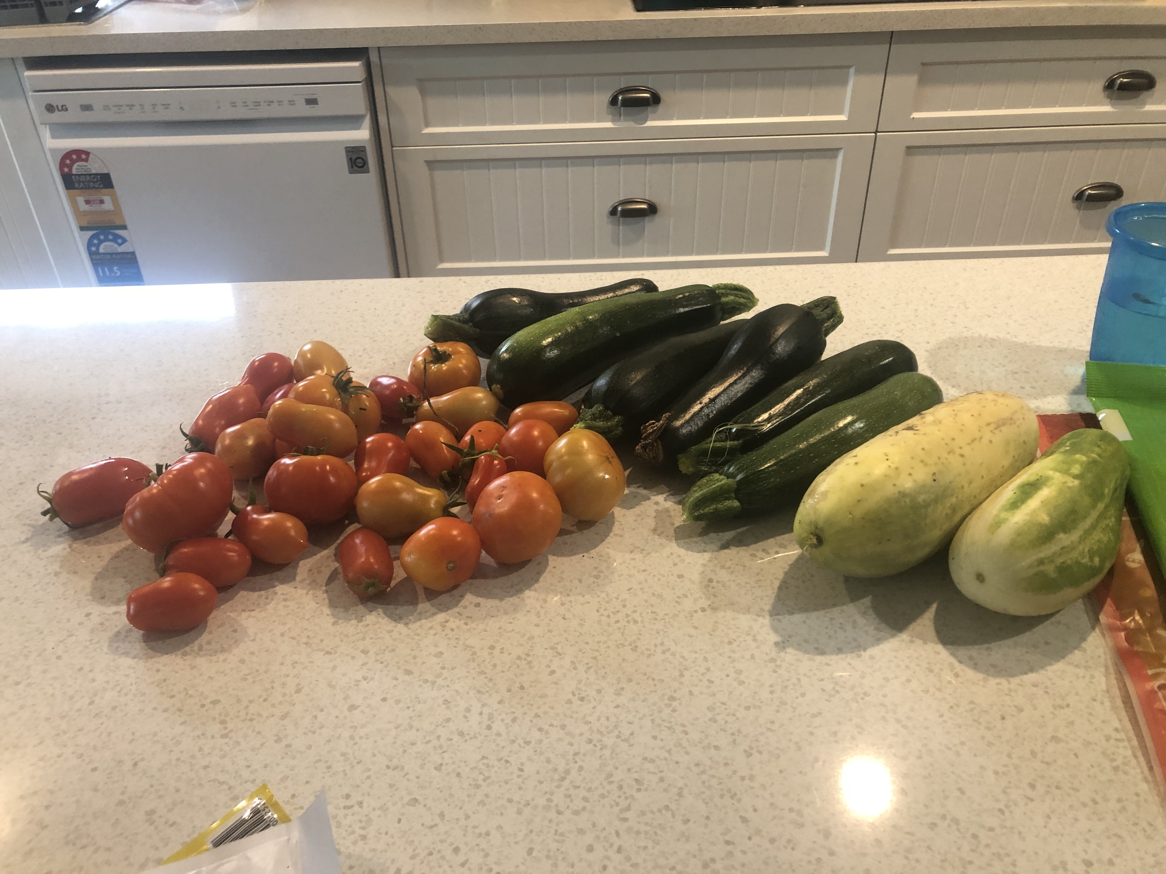Plenty, plenty of Zucchini – zucchini Cake, soup, fried, and my latest favourite is Zoodles a tasty replacement for Pasta. We are also sharing them on my “Food is Free” seat, out the front of my garden. I have lost a lot of fruit to the birds but am not worried, my dream of living like I was raised hasn’t quite come off!. We don’t eat much dessert and I don’t need it, kids aren’t into bottled fruit, I still like the idea and have a side of me that’s a bit “Prepper”.