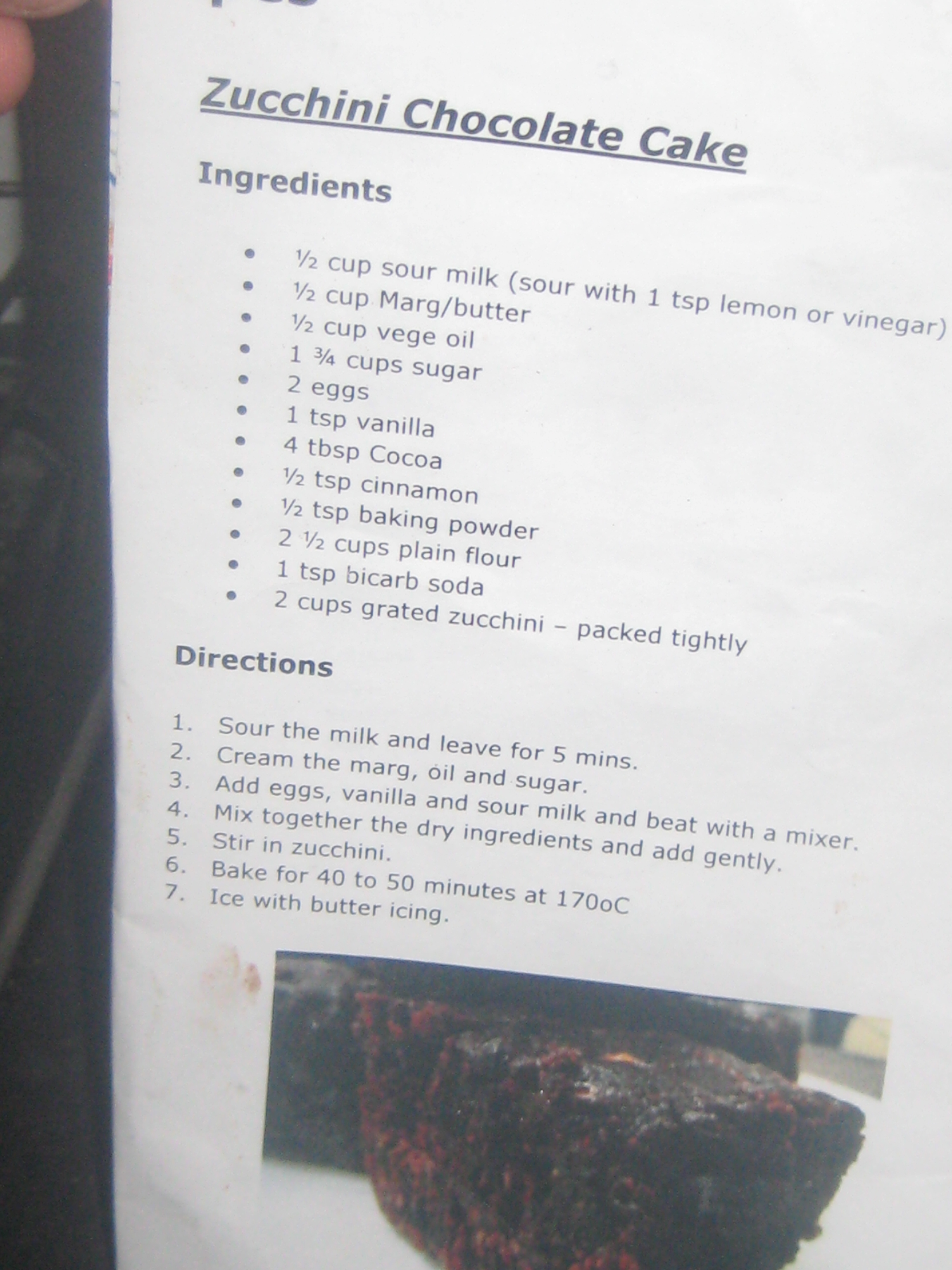This is the recipe for the chocolate cake- also zucchini bread is as good
