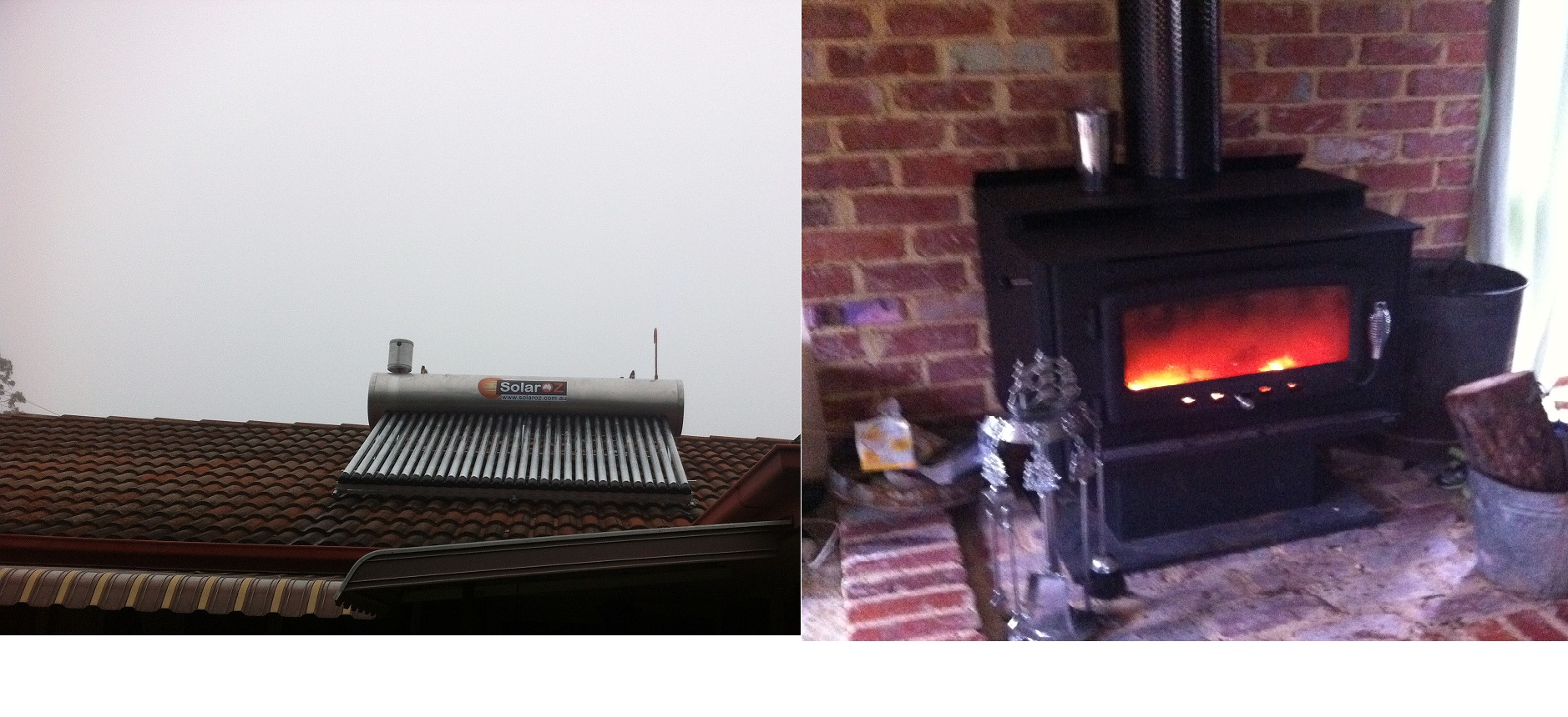 This is the heater installed- a Nectre Mega- largest and best I could afford with a water jacket- $3k and the solar hot water system- evacuated tubes ($7k installed)- the water jacket feeds hot water into the tank as do the solar tubes- the mains water comes through a coil through the tank and takes on the heat from the surrounding water. We have not hooked up the electricity as yet but have had hot water ever since it was installed- SAVINGS are from hot water for free, heating the house with wood and drying clothes. I expect payback to be within 5 years- not bad there is not an investment that will give you those returns on your money-
