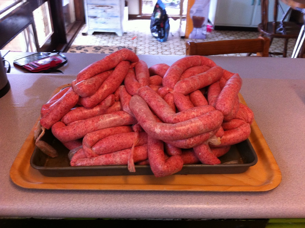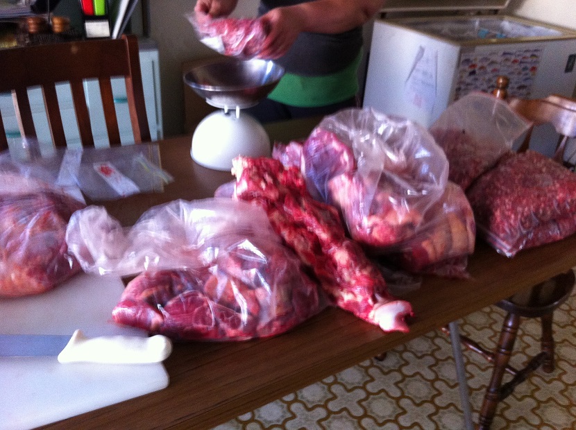 Meat- a trip to karoonda Park- did some cutting up for them, meat for me, beast cut up for them- win win, that it what makes the world go round, no this crap money stuff that does us no good. I go to the farm for my kids; I want them to experience real life, to know where real food comes from and what it takes to get it to the plate. A large table of mince, chuck bones, rolled beef and some casserole and Vola some into snags as well