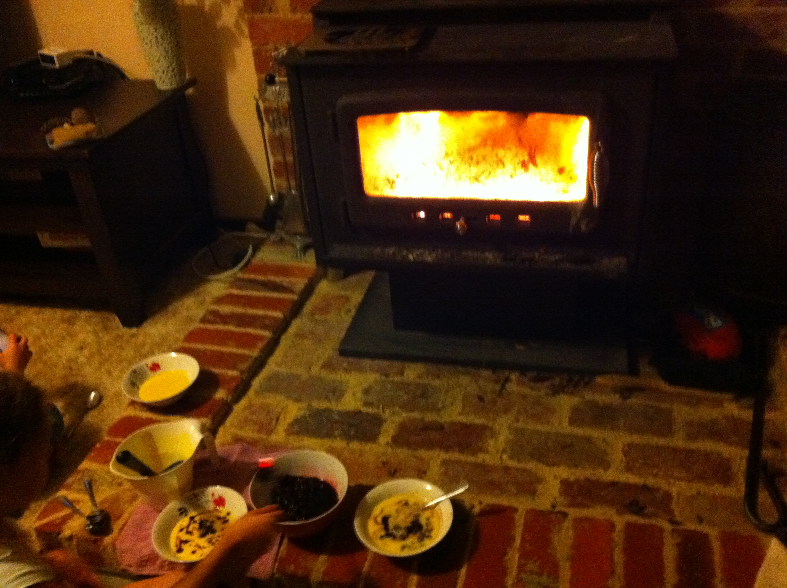 So it’s Late June, cold outside and yes it’s time to open a jar of preserved blackberries- the smell, heavy in sweet fruit, my dear little purple berries. Cooked in custard- don’t get silly with these, this is no time to be master chef! – This is simple, slow, and sole warming food.